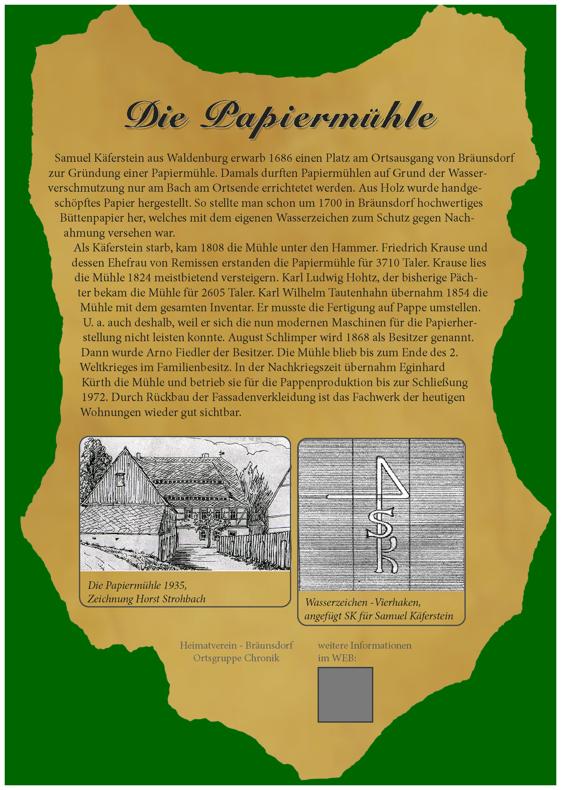 Bräunsdorf zur Gründung einer Papiermühle. Damals durften Papiermühlen auf Grund