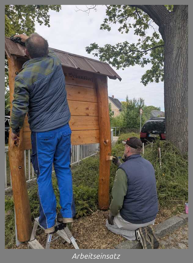 Am 17. Mai fand ein gemeinschaftlicher Arbeitseinsatz zur Verschönerung unseres Dorfes statt. Zahlreiche engagierte Mitglieder des Heimatverein Bräunsdorf packten mit an, um unserem Ort ein frischeres und gepflegteres Aussehen zu verleihen. Die Buden auf dem Dorfplatz wurden gründlich gesäubert, während die Sitzbank einer Rundumerneuerung unterzogen wurden: Sie wurde abgefräst, erhöht und anschließend frisch gestrichen. Auch der Wanderparkplatz im Unterdorf wurde auf Vordermann gebracht – Unrat wurde entfernt, die Fläche gesäubert und mit neuen Pflanzen liebevoll bepflanzt. Ein weiterer Schwerpunkt lag auf den Anschlagtafeln, die ebenfalls einen frischen Anstrich erhielten.